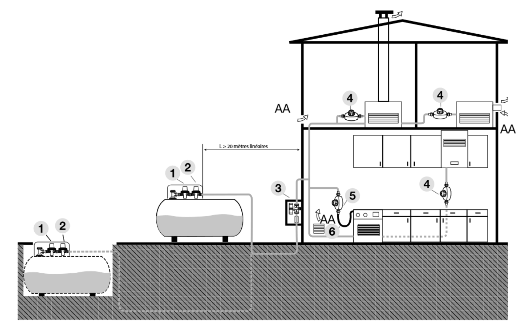 Exemple d’installation domestique alimentée par citerne enterrée ou aérienne